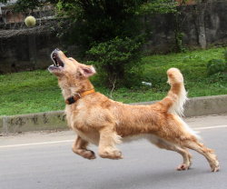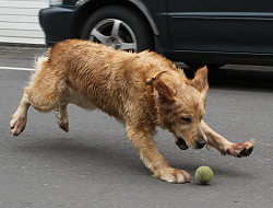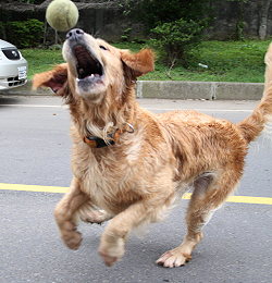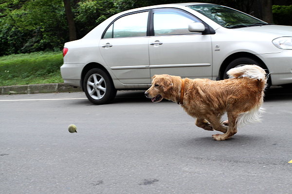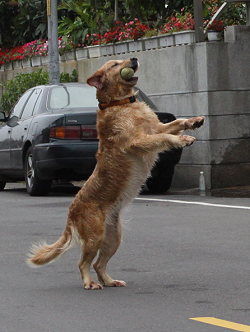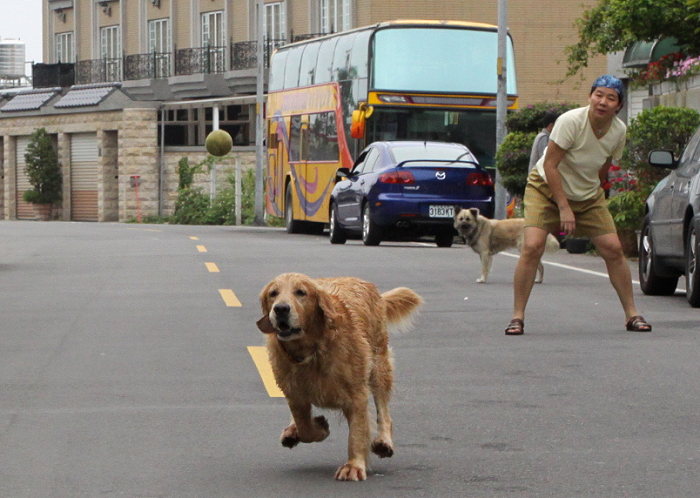 Lucy玩球,後面的小胖很羨慕 (2009-4-05)